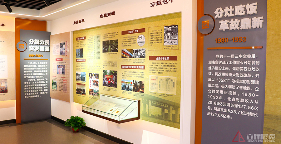 湖南省財政廳歷史陳列館是一個湖南省財政歷史的象征和文化建設的重要標志,是展示歷史、文化傳承的重要窗口。 展館主要以現代電子觸摸屏與傳統圖文展板相結合,配以部分有歷史感的實物,回顧省財政廳的風雨歷程,展示財政工作對湖南經濟社會發展所發揮的宏觀調控、政策保障和資金支持作用以及財稅文化的深厚底蘊。綜合采用實物、圖片、文字、觸摸屏手段等方式展現,按照“內容實事求是、文字準確精煉、設計前瞻新穎、布展美觀大方、通盤留有余地”思路進行。