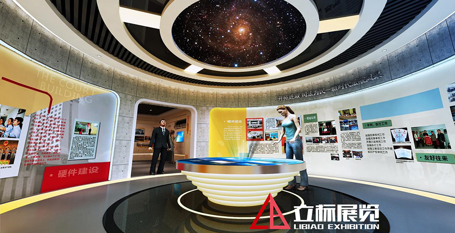 法治承載著一個國家的立國理想,構筑起一個國家的強國夢。本館整合省高院機關信息、發展歷程、發展成就、新時代法院風采等方面的展示內容,理清展示思路,按照由過去到現在,由概況到分述的線索有序展開。空間針對重點展示內容,選擇恰當的高科技展示手段進行傳達,使展演方式豐富有趣,同時運用多元化的構成關系將裝飾用材與展品相互融合,整體設計注重空間感和節奏韻律,在豐富的變化中尋求和諧統一 ,讓觀者在參與互動中接受新時代法院的風采及法律文化的熏陶。