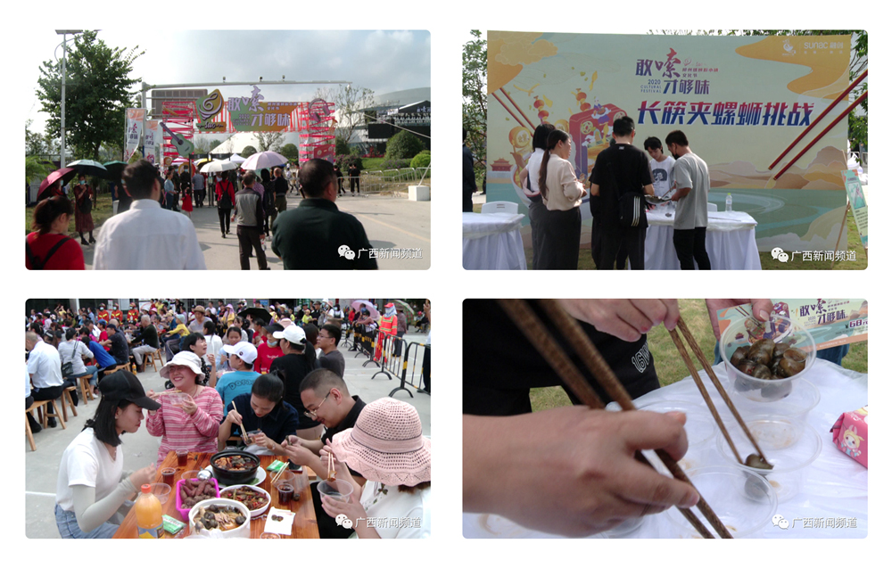 螺螄粉小鎮(zhèn)是柳州市重點(diǎn)打造的文旅和螺螄粉產(chǎn)業(yè)項(xiàng)目。11月21日, 2020第三屆螺螄粉小鎮(zhèn)文化節(jié)開幕了,那今年的文化節(jié)都有什么好吃的和好玩的呢?今年的螺螄粉小鎮(zhèn)文化節(jié),除了傳統(tǒng)的螺螄粉集市以及螺螄粉品嘗區(qū)域以外,還增設(shè)了螺友競(jìng)技項(xiàng)目——涂鴉墻、長(zhǎng)筷夾螺螄挑戰(zhàn)、嗦螺螄比賽等,吸引了不少市民參加。而整個(gè)文化節(jié)中,吃貨們最期待的恐怕要數(shù)百螺宴了。
