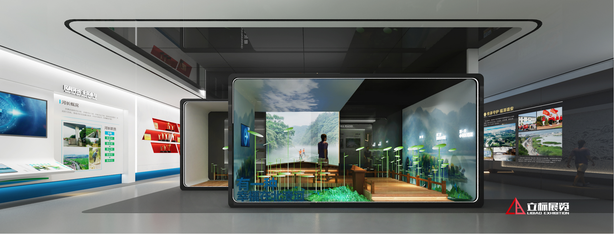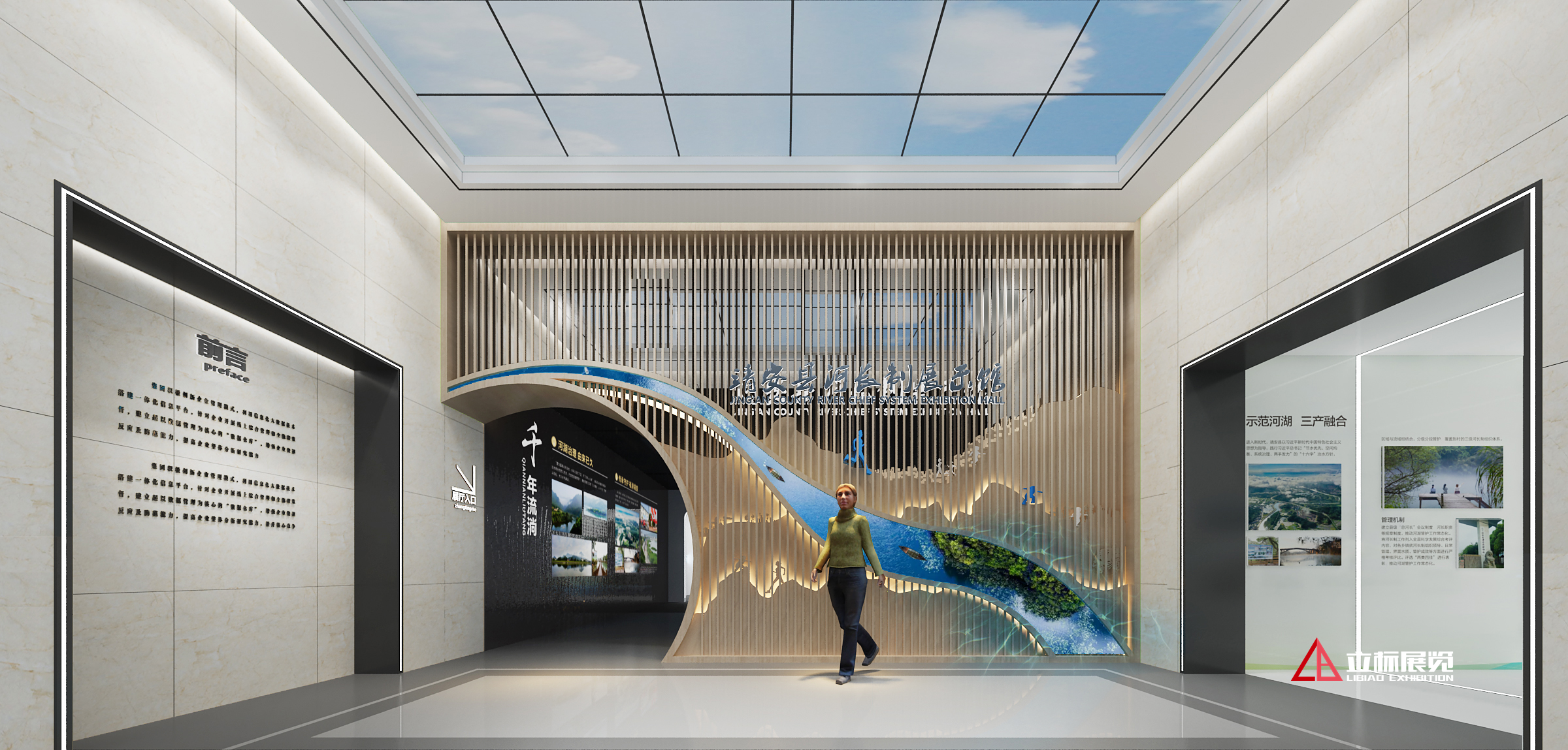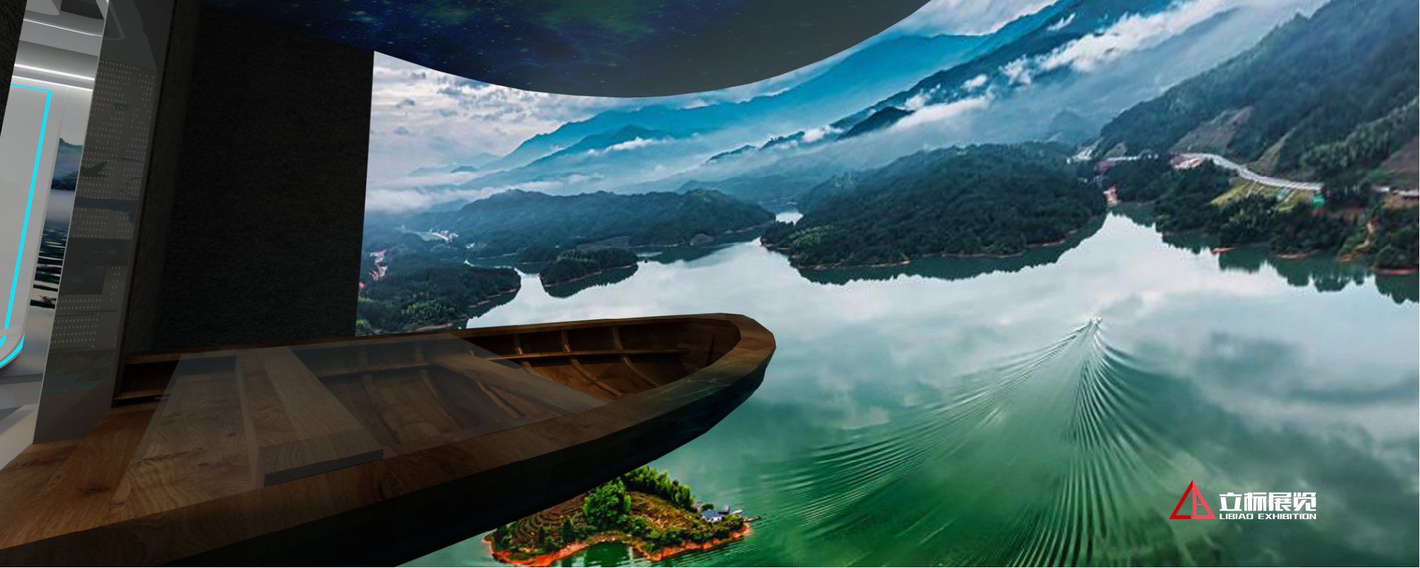 整個展館展廳分為千年流淌、歲月榮光、我是河長、創造輝煌和水美靖安五大篇章。以數字沙盤、虛擬導播、虛擬翻書、墻面互動投影、全息投影、地幕投影、碗幕影片、VR影片和AR展示9種新穎而富有科技感的呈現方式,重點展示靖安水文化的歷史沿革、河長制發展軌跡、獨特的旅游資源、靖安“文旅合一”規劃建設情況,憧憬靖安美好未來。同時,作為靖安水文化游學教育基地,通過戶外沙盤、實景互動、知識問答、小河長培訓等展項的設置,可以為小朋友們,提供全面..