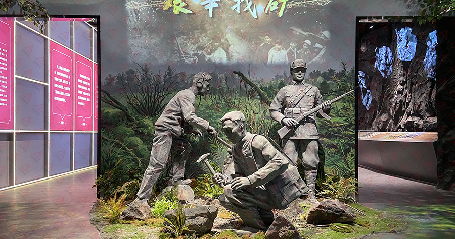 湖南地質鈾礦勘探陳列館分為兩大展區,東側圖文展,展示崢嶸歲月里湖南核地質工作者的艱苦奮斗和重大貢獻;西側體驗展,再現了湖南核地質工作者披荊斬棘的歷史情境。